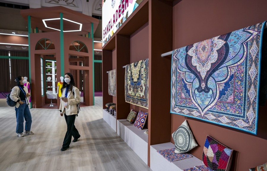 This photo taken on Nov. 19, 2022 shows the exhibition area of Bangladesh at the 6th China-South Asia Exposition in Kunming, southwest China's Yunnan Province. (Xinhua/Chen Xinbo)